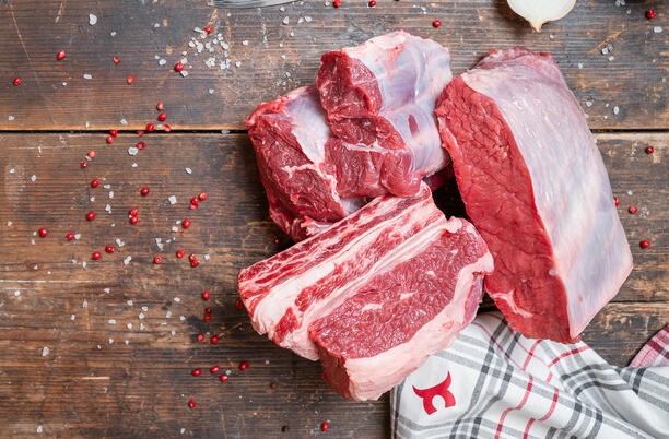 Na pečení a dušení použijte maso, které není tak šťavnaté, zato je prorostlejší a chuťově výraznější. My doporučujeme třeba krk, hrudí, plec, žebra nebo vrchní a spodní šál.